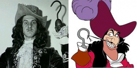 Csakúgy, mint Csingilingnél, Hook kapitánynál is egy embernek köszönhető a kapitány külseje és hangja. Állítólag azért is Hans Conriedra esett a választás, mert nehezen kezelhető, így jellemben sem térhettek el sokban.
