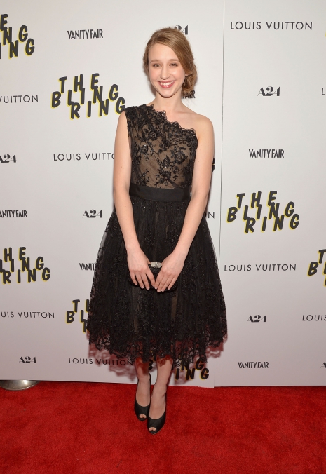 Legújabb filmje, a Lopom a sztárom június 11-ei New York-i premierjén tette tiszteletét a 18 éves színésznő ebben a lélegzetelállító fekete Marchesa-ruhában, amihez ugyanilyen márkájú és színű retikült és Ferragamo lábbeliket választott.