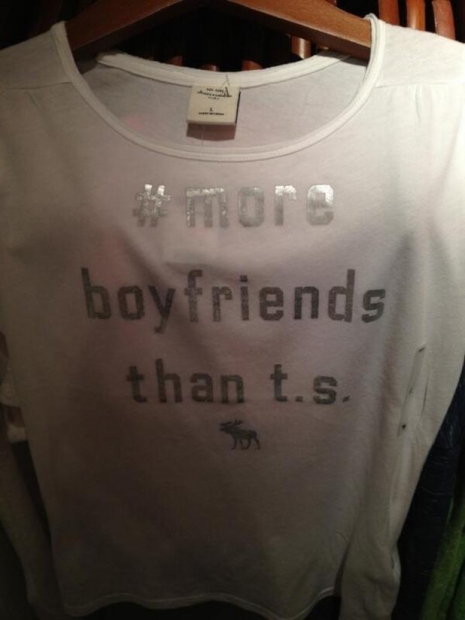 Egyik tervezőjük szerint jó mókának tűnt rányomtatni a pólókra, hogy a viselőnek több barátja volt, mint Taylor Swiftnek, ezért kapott helyet a pólón a #more boyfriends than t.s. felirat, amely egyértelműen Taylorra utal. Az igazgató örömmel engedélyezte a pólók árusítását, nem számolva a rajongók felháborodásával.
