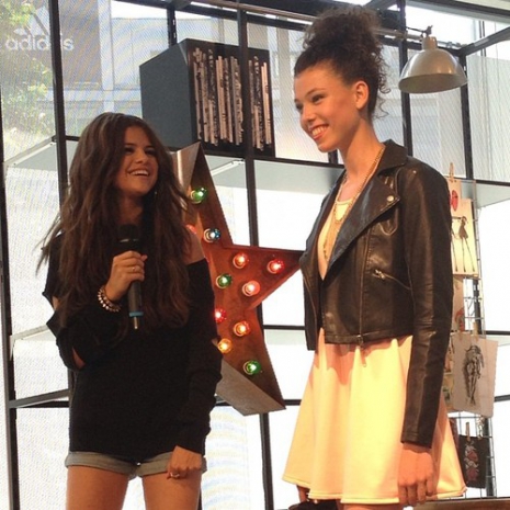 A bemutató után egy ebéden vett részt, ahol meginterjúvolták. Többek között megkérdezték tőle, hogy milyen ételeket eszik, erre pedig a válasza a kínai, az itáliai és mindenféle csípős kaja volt. Valamint születésnapjával kapcsolatban is kérdezték, illetve arról, hogy miért jó az Adidas Neo-val dolgozni, de megkérdezték, melyik a kedvenc darabja a kolekcióból, mi nélkül nem megy el otthonról és, hogy írja le a kollekciót 3 szóval. „Az Adidas Neo-nál egy csodálatos csapattal dolgozhatok együtt. Fantasztkius emberek és köszönöm nekik ezt a lehetőséget. Természetesen a cipő résznél a wedges, mert az ilyen cipőket napi szinten hordom, de nem tudok választani. Szerintem ez a kollekció csodás, üde és csajos” – árulta el Selena, aki a szervezőktől kapott egy különleges ajándékot is kistestvére, Gracie számára, mégpedig egy pici cipőt.