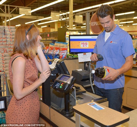 A színész a Diet Pepsivel forgatott, és beállt egy szupermarket pénztárához is.