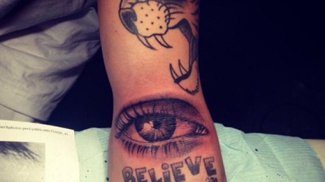 A 19 éves énekes magára tetováltatta édesanyja, Pattie Mallette szemét a bal karjának belsejébe, ott, ahol az alkarja találkozik az alsó bicepszével.