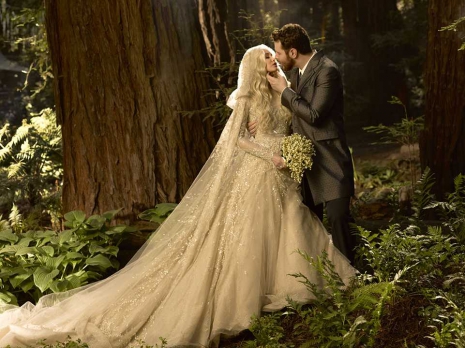 A szertartás helyszíne egy 500 éves erdő volt, ahova berendezték Lothlórien mását, és ami még szokatlan, hogy a menyasszony is Galadrielnek, Lothlórien úrnőjének volt öltözve. A ruhát az elismert tervező, Elie Saab készítette, és nagyon hasonlít arra a ruhára, amit II. Erzsébet viselt a koronázási ünnepségén.
