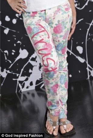 A rózsaszín pólón a következő felirat olvasható: „Szeresd az Uradat, Istent / A teljes szíveddel / A teljes lelkeddel / A gondolataiddal és az összes erőddel.” Míg a virágos farmernadrágon a hinni felirat olvasható. Ti viselnétek ilyen ruhákat?