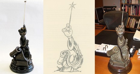 A Disney-legendák nem csupán egyszerű díjat kapnak: nevük felkerül egy hivatalos listára, mely évről évre hosszabb lesz. Természetesen itt is van egy kis szobrocska, ami esetünkben három részből áll. Van rajta egy spirál, ez a képzelet és az ötlet erejének jelképe. A kéz az ügyesség, fegyelem és szaktudás adottságát tartja. Végül a kézben levő varázspálca és a végén található csillag a varázslatot kívánja visszaadni: a szikrát, ami akkor keletkezik, amikor a képzelet és az ügyesség egy új álmot hoznak létre.