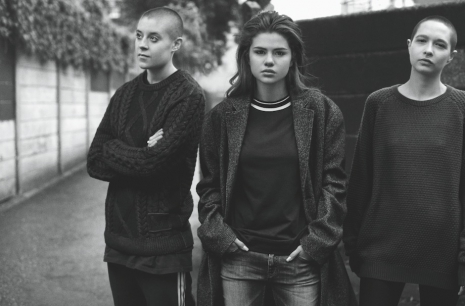 Gomez a fotózás során elhagyta a vörös szőnyeges style-t és egy túlméretezett John Varvatos-kabátban, egy Marni-ingben és Denham-farmerban pózolt a kamerának magabiztosan, mindössze a mosolya volt a sminkje.