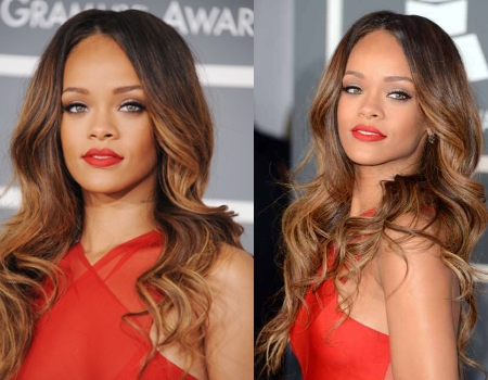 A népszerű énekesnő a 2013-as Grammyn mindenkit elvarázsolt, nemcsak ruhájával és tökéletes sminkjével, hanem ombre hajával is. Rihanna dús hajzuhatagát remekül feldobja a színátmenet.