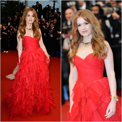 Természetesen a végére hagytuk a legjobbat. Isla ebben a gyönyörű Oscar de la Renta- piros ruhában és Bulgari-ékszerekben káprázatosan nézett ki. A kiengedett, hullámos haja csak még jobban alátámasztja azt, hogy ennek a szettjének itt a helye, egyébként a legszebb cannes-i összeállítások közé is bekerült.