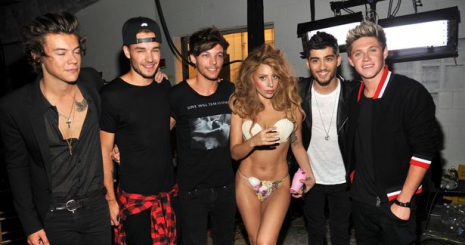 A One Direction a díjuk átvétele után a backstage-be vonult, hogy a rajongóiknak is külön megköszönjék a bizalmat, mikor Gaga odasétált hozzájuk és biztosította őket a támogatásáról – ugyanis többen kipfujolták a zenekart.