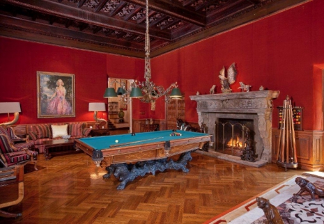 Ami a belső teret illeti, a nappali nem kevesebb, mint 22 méter belmagassággal rendelkezik, a híres könyvtárban pedig kézzel kifaragott faburkolat és lépcső vezet a galériába. A biliárdszoba a 20. század egyik legnagyobb mágnásának, San Simeonnak a műve, aki egy hatalmas kőkandallót terveztetett ide.