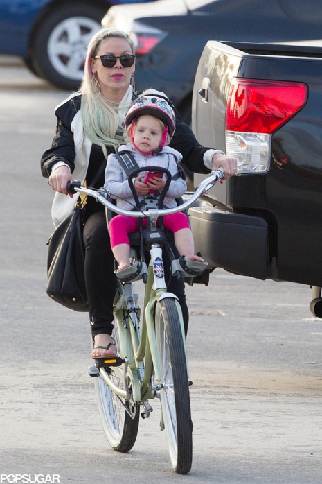 A háromszoros Grammy-díjas énekesnő Venice Beach területén kerékpározott kislányával, Willow-val júniusban, lánya egy cuki bukósisakot viselt.