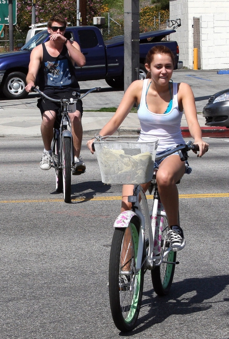 A sztárpáros még 2010 márciusában kerékpározott a Kaliforniában található Toluca Lake körül – Miley még ebben a rövidnaciban és trikóban is kevesebbet mutatott magában, mint mostanság.