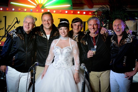 Az esküvőn csak rokonok, barátok és közeli ismerősök jelentek meg. Gabi hagyományos hófehér ruhában pompázott, és elárulta, hogy előző este külön aludtak, a ruháját pedig egyáltalán nem látta jövendőbelije. A lagziban dalra fakadt a menyasszony is, pedig nem tervezték.