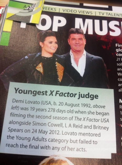 Az egykori Disney-sztár bekerült a 2014-es Guinness Rekordok Könyvébe, ugyanis ő lett minden idők legfiatalabb X Factor-mentora, hiszen egészen pontosan 19 éves és 278 napos volt, amikor elkezdték forgatni az amerikai tehetségkutató második évadát 2012. május 24-én.