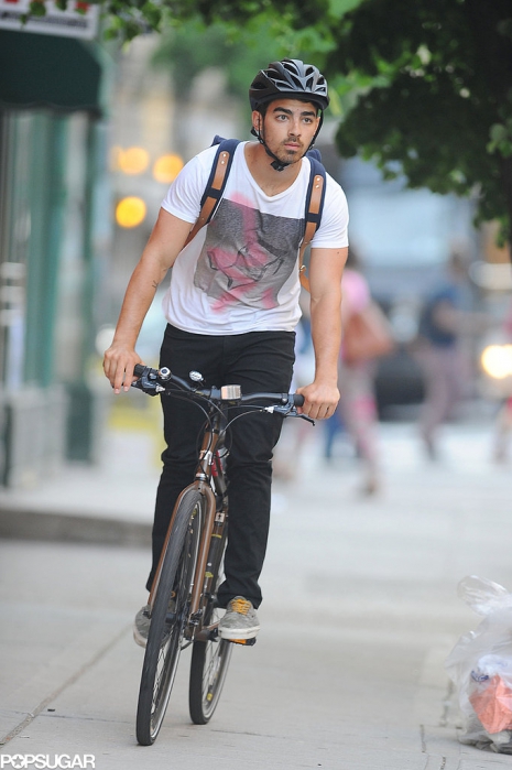 A Jonas Brothers középső tagja 2013. május 22-én kerékpározott New York utcáin. Joe, mielőtt elindult volna, gondolt a biztonságra is, hiszen viseli a kétkerekű használatához javasolt bukósisakot.