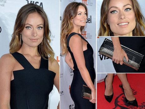 Az amerikai színésznő macskaszemeket idéző sminket és egy milliókat érő Roland Mouret-ruhát viselt, hozzá egy téglalap alakú, flitteres táskát és egy egyszerű, fekete magassarkút választott.