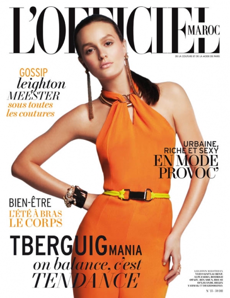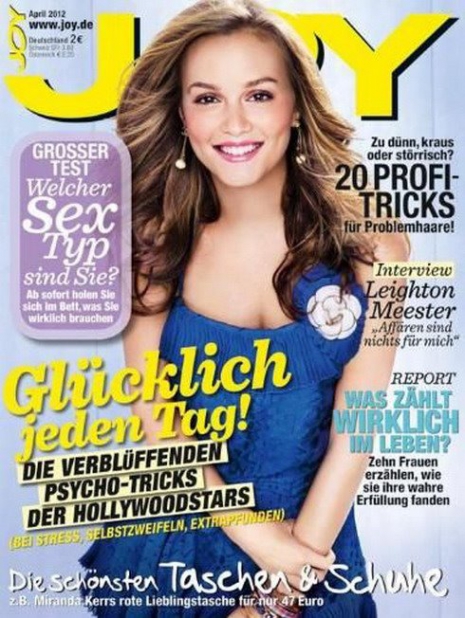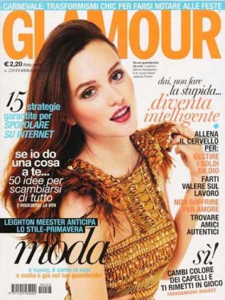 Nem éppen egy szerencsés címlapfotó. Leighton felkarjai túlságosan vékonyak, ráadásul ez a színes smink sem áll neki jól, amit egyébként a színes kiegészítőkhöz igazítottak. És hová tűntek a mellei?