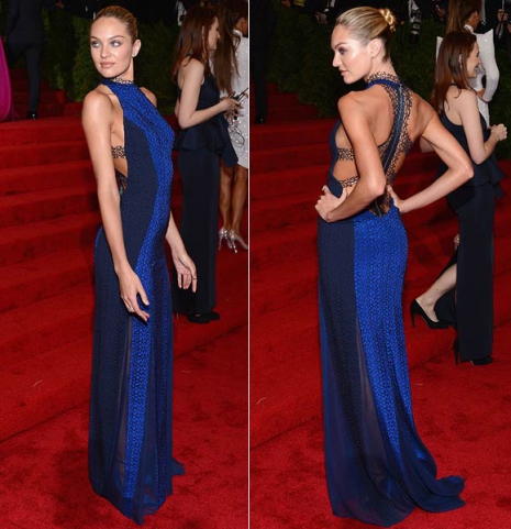 A modell egyik leggyönyörűbb ruháját a Rag&Bone tervezőpáros készítette pontosan Candice személyére szabva, s minden megtalálható benne, ami egy jó ruhához kell: csipkebetét, kivágás, áttetsző anyag és nem utolsósorban: a modell kedvenc színe, a kék.