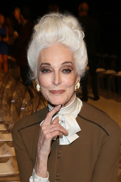 Korunk legidősebb modelje Carmen Dell’Orefice is természetes valójában hordja az évek alatt megőszült haját. Talán ennek is köszönhető, hogy még mindig jelentős névnek számít a szakmában, hiszen olyan divattervezőkkel dolgozik, mint Alberta Ferretti és olyan luxusmárkák felkérésére számíthat, mint a Rolex.