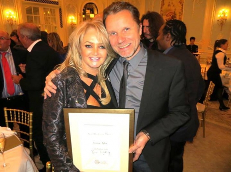 Bonnie Tyler kezében a díj plakettjével
