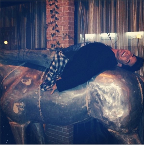 Adam Lambert meglehetősen jó kedvében volt, mikor ellátogatott a Los Angeles-i O Bar étterembe, hiszen rögtön fel is pattant a helyiség előtt található ezüst szoborra. Az énekes a következő sorokat fűzte tettéhez: „Fogjátok vissza lovaitokat!”