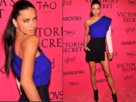 Adriana Lima eléggé visszafogta magát, s a szettje sem igazán bonyolult: csupán egy karkötőt és egy fekete bokacsizmát viselt az aszimmetrikus Emanuel Ungaro márkájú ruhájához, ami minden bizonnyal neki sem a legjobb választása volt.