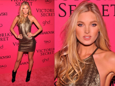 Az estélyi több helyen, köztük a hátán is ki volt vágva, s igen merészen fel volt sliccelve az elején, ám cseppet sem mondható közönséges választásnak. Rendkívül elegánsan festett a topmodell, aki már a 8. éve mutat be a divatshow-n fehérneműket.