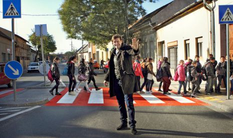 Tilla kísért át iskolásokat a felújított zebrán