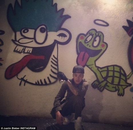 Justin Bieber Kelly Osbourne-t arra tanította, hogyan firkáljon össze egy falat — a Baby énekese az utóbbi időszakban kapott hideget-meleget graffitimániája kapcsán, de úgy fest, ez őt korántsem zavarja, sőt! Ezúttal a Fashion Police műsorvezetőjének mutatta meg, hogyan is bánjon a festékszóróval.