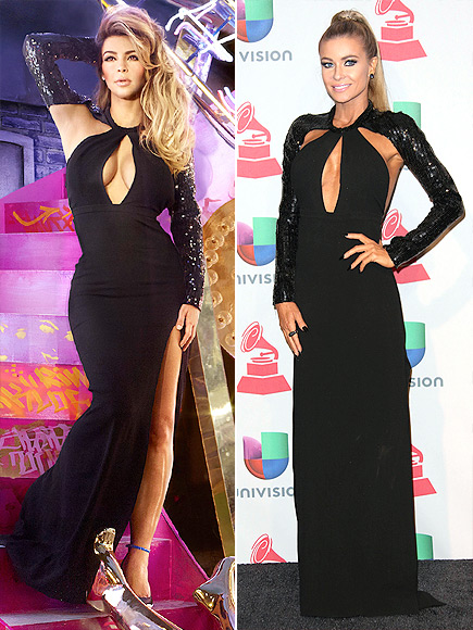 A két celebritynek, Kim Kardashiannek és Carmen Electrának igencsak hasonló ízlése van: mindketten ugyanazt a Saint Laurent Paris-estélyit válaszották. A mély dekoltázzsal rendelkező, flitteres ujjú darab ez esetben jobban mutat a kevésbé idomos Carmenen – a kevesebb néha több!