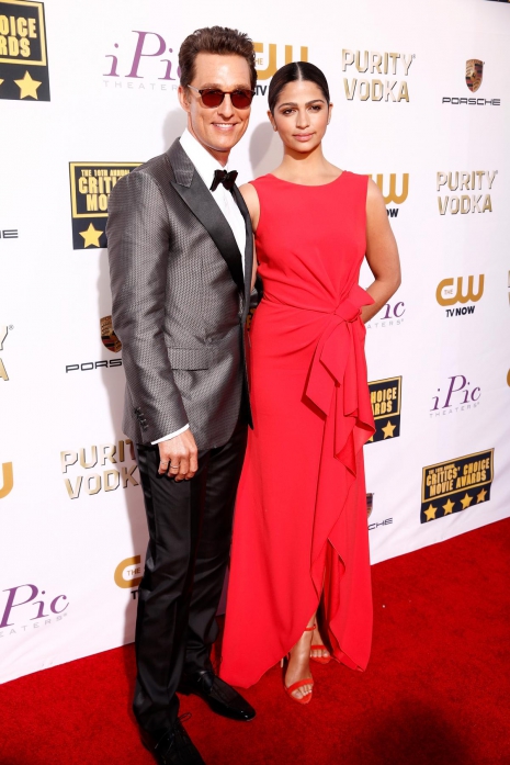 Napszemüvegben, ezüstszínű Lanvin- selyemmel futtatott öltönyben jelent meg Camila Alves mellett, aki egy ujjatlan Paule Ka-ruciba bújt, mely az idei tavaszi kollekcióból való. Az Oscar Tiye ‘Malikah’ szandik és a Martin Katz-gyémántfülbevaló már hab a tortán.