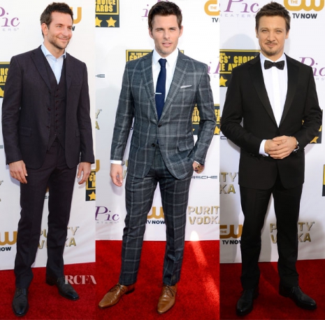 Bradley Cooper egy Bottega Veneta ‘Quetsche’ öltönyben, James Marsden egy szürke Ovadia & Sons-öltönyben és Givenchy-cipőkben, míg Jeremy Renner egy egygombos Ermenegildo Zegna- fekete öltönyben jelent meg a díjátadón. Fincsi!