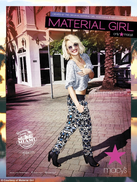 A napokban láttak napvilágot Madonna és lánya, Lourdes saját közös ruhamárkájának, a Material Girlnek legújabb, 2014-es tavaszi kampányához készült fotói, melyeken Rita Ora látható, akivel már nem először dolgozott együtt az anya-lánya páros.