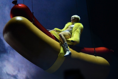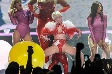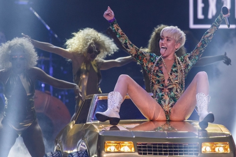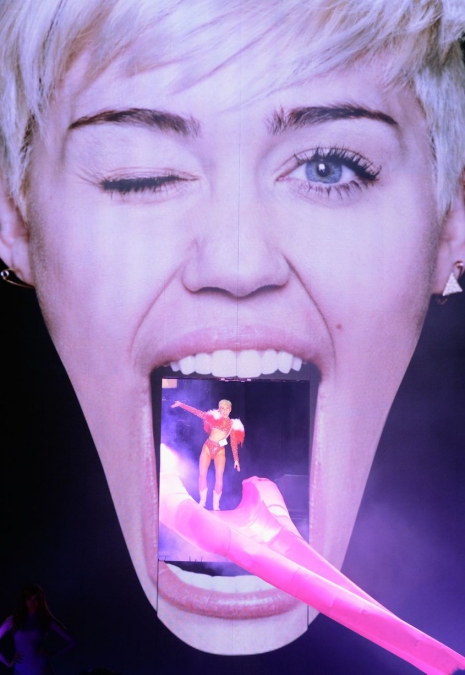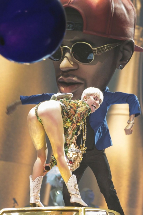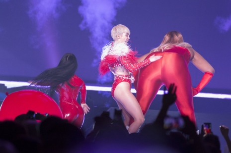 Az esti koncert nem telt botránymentesen, az énekesnő rengeteg szexuális elemmel toldotta meg a show-t, és a sztár hírhedt „tánca”, a twerk is szerepet kapott a koncertsorozatban. Egy óriási repülő hotdog, egy kék – a Szörny Rt. Sullyjára hajazó – szörny, és a sztár jól ismert, óriási mű-ujja is belekerült az énekesnő turnéjának programjába. A koncert nyitóelőadói a Icona Pop zenekar, Sky Ferreira és Liza voltak.