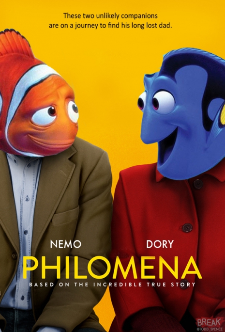Todd Spence grafikus az idei Oscar-szezon Legjobb film kategóriájának jelöltjeit újratervezte – vagyis azok plakátjait. Olyan mesehősök kaptak helyet a Mielőtt meghaltam, a Nebraska, A nő, A Wall Street farkasa és az Amerikai botrány plakátjain, amelyek mind Pixar-filmekben szerepeltek.