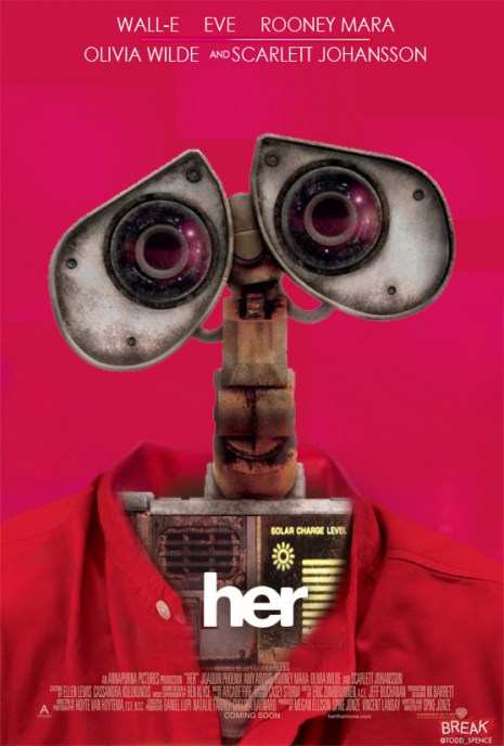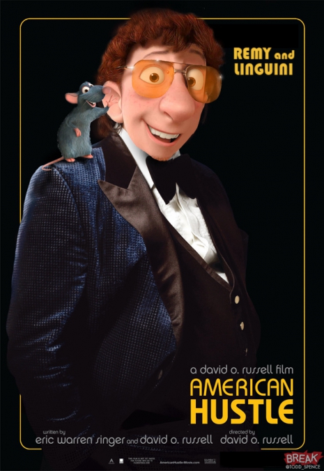 A Lecsóból ismert Remy és Linguini az Amerikai botrány plakátján jelennek meg Bradley Cooper helyett, A nő poszterén Joaquin Phoenixet a Wall-E hőse váltotta – nagyon kreatívan, hiszen maga a film is a mesterséges intelligenciával való kapcsolatról szól. Tom Hankset a bátor Phillips kapitányként Merida cserélte fel, a Dallas Buyers Club Matthew McConaughey-ja helyén pedig a Toy Story vakmerő és szerető Woodyja látható.