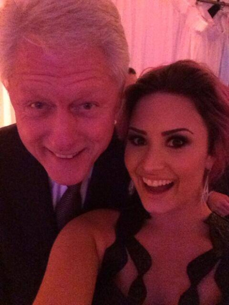„Szerintem én tanítottam meg neki, hogy mi is az a selfie, mert amikor megkértem rá, az volt a reakciója, hogy 'Huh?', én meg 'Áh, csak mosolyogjon!'. Ugyanazon a jótékonysági rendezvényen vettünk részt. Ő a titkosszolgálat által el volt különítve, de én odamentem, és megkérdeztem, hogy 'Csinálhatok Önnel egy képet?', Ő meg azt felelte, hogy 'Óó, persze, persze'. Majd megköszöntem, erre az emberei azt mondták: 'Ki fogod posztolni a képet?', én meg 'Uhh, nem muszáj, de ha lehetséges, akkor nagyon szeretném, de ha nem lehet, az sem baj', majd erre ők: 'Csak jelöld meg a tweetbe. @billclinton a felhasználóneve'.” – mesélte nevetve Lovato, majd így folytatta. „A rendezvényen fel is léptem, és beszéltünk a produkcióról, amire azt mondta nekem 'Annyira fantasztikus vagy.' Én meg erre 'Köszönöm, Bill Clinton'!”