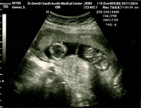 Selena Gomez és Justin Bieber pas de deux-je nagy érdeklődést váltott ki a rajongók körében, így nem meglepő, hogy az internet valósággal felrobbant, amikor napvilágot látott egy szonogrammfotó egy iker magzatpárról, amelyet egy S. Gomez nevű páciens részére készítettek 2014. március 11-én a St. David's South Austin Medical Center nőgyógyászati osztályán.