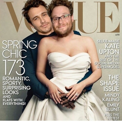 Persze ahogy Kanye West videoklipjét, úgy az áprilisi Vogue-címlapot is újragondolta James Franco és Seth Rogen; saját arcképeiket szerkesztették a címlapra, az eredményt pedig Franco Instagram-profilján mutatták be. „Seth! Szeretlek, haver!”