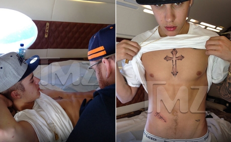 Természetesen ezúttal is Bang Bang tetoválta az énekest, akinél olyan sztárok fordultak már meg, mint Rihanna, Selena Gomez vagy Katy Perry. Bang elárulta; ez volt élete egyik legnehezebb műve, mivel a gép olykor rázkódott, az adrenalinszintje pedig az egekben volt.
