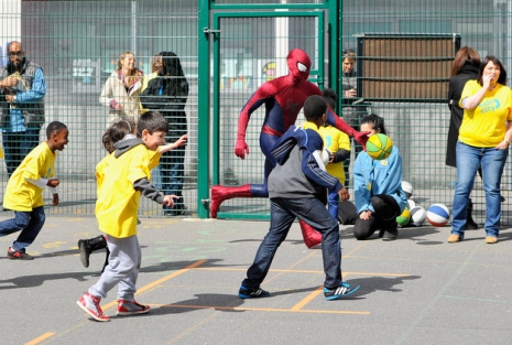 A csodálatos Pókember sztárja magára öltötte képernyőbeli alteregója szerelését, és meglátogatott egy brixtoni jótékonysági szervezetet, a Kids Cityt három nappal ezelőtt, ahol 3-11 éves gyerkőcökkel kosarazott. Imádni való!