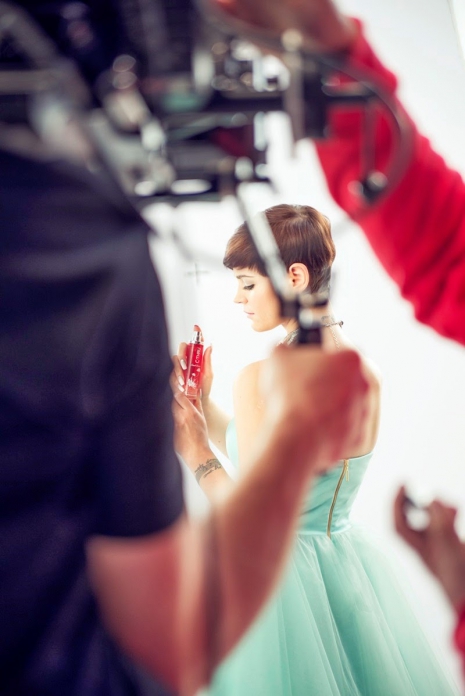 „Sziasztok, kedveseim! A blogomban nem szerepel, de elkezdtem dolgozni a C-THRU márkával. Talán már néhányan láttatok engem egy rövid spotban, ahol a szagokra panaszkodom. Az alábbi néhány fotó a fotózás alatt és a reklámszünetben készült rólam. Egy szép mentaszínű tüllruha volt rajtam, amit Wioli Piekut készített, direkt erre az alkalomra, hogy segítse bemutatni az ideális lány megtestesülését. Nagyon boldog vagyok a végeredmény kapcsán!” – írta az énekesnő.