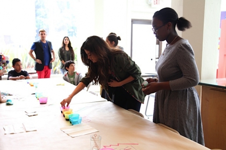 Selena a kicsikkel közösen készített papírvirágokat és még tojást is festett, hogy a gyerekek kedvében járjon, majd velük közösen tekintette meg az épületben kiállított festményeket.