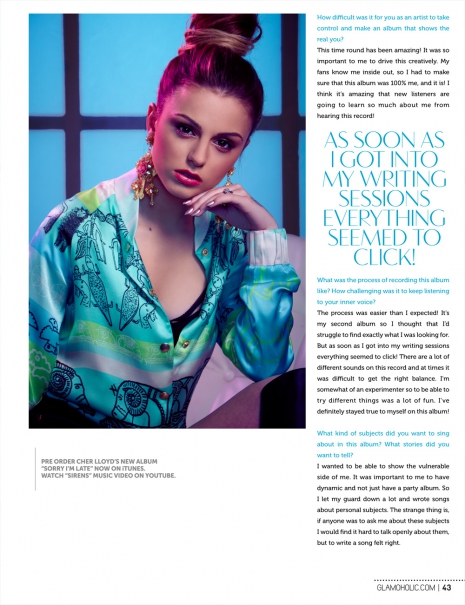 Cher Lloyd karrierje egyre magasabban szárnyal, ráadásul hamarosan megjelenő második stúdióalbuma és az azzal járó reklámhadjárat is sokat lendít hírnevén. Így történt meg az is például legutóbb, hogy a Glamoholic nevezetű magazin felkérte, hogy legyen legújabb számuk címlaplánya és a lenyűgöző fotósorozat mellé természetesen egy interjú is dukált a fiatal brit tehetséggel.