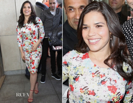 A színésznő az Így neveld a sárkányodat 2 photocallján jelent meg május 15-én ebben a virágmintás, hosszú ujjú Erdem-ruhában, melyhez vörös Stuart Weitzman-szandikat társított.