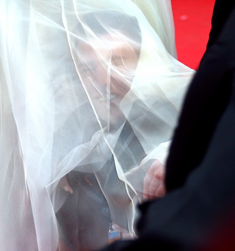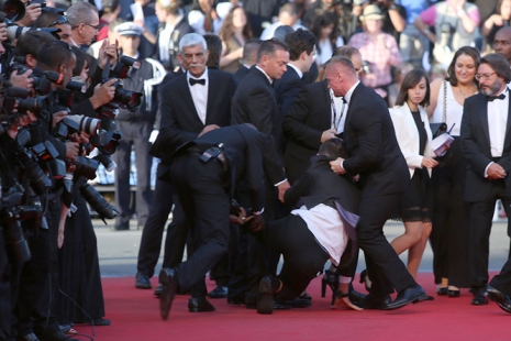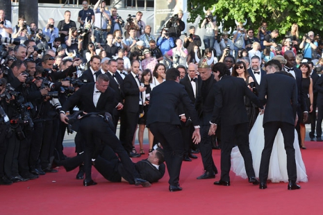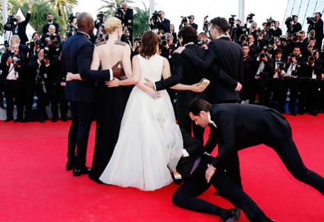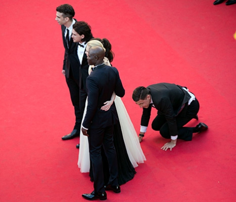A vörös szőnyeges prankster bebújt a színésznő lábai közé, miközben mindenki őket fotózta.