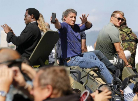 Délelőtt került sor a Feláldozhatók 3 sajtókonferenciájára a cannes-i Palais des Festivals egyik termében – ezt megelőzően a filmsorozat sztárjai, Sylvester Stallone, Arnold Schwarzenegger, Mel Gibson, Harrison Ford, Jason Statham, Wesley Snipes, Dolph Lundgren, Kelsey Grammer és Antonio Banderas miatt leállt a forgalom a tér közelében, ugyanis egy tankkal érkeztek a vörös szőnyegre.