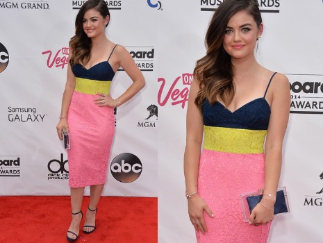 A csinos kis hazudozó konferálóként vett részt a díjátadón, ez alkalomból pedig egy igazi tavaszi hangulatot hozó Alex Perry-ruhát húzott fel, ami éjkék, citromsága és rózsaszín színekben pompázik. Bájos megjelenését egy Charlotte Olympia-retikült, Graziela Gem és EF Collection-fülbevalókat, utóbbi márkát viselték továbbá karkötői és gyűrűi.