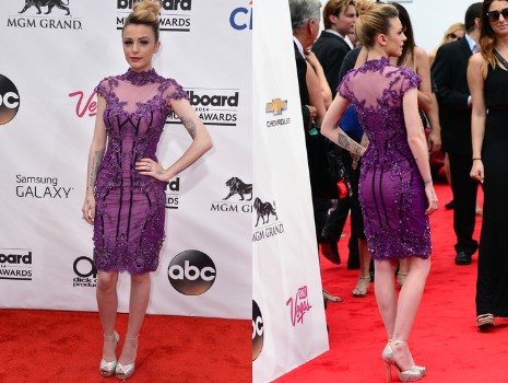 A brit énekesnő egy lenyűgöző, lila színű Mikael D-koktélruhában tett jelenést, amit gyönyörű virágmotívumokkal díszítettek. Cher remekül festett, egyedül talán a színválasztásba tudunk belekötni, mivel amúgy is fehér bőrét még sápadtabbá varázsolta a sötét árnyalat.
