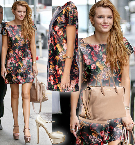 A Disney üdvöskéjét egy New York-i hotelből való távozás közben kapták lencsevégre múlt hét csütörtökön. Aznap egy 33.000 forintos, virágmintás dresszt viselt a Fame & Partnerstől, valamint egy Miu Miu-táskát, mely tízszer annyiba került, mint maga a ruha.